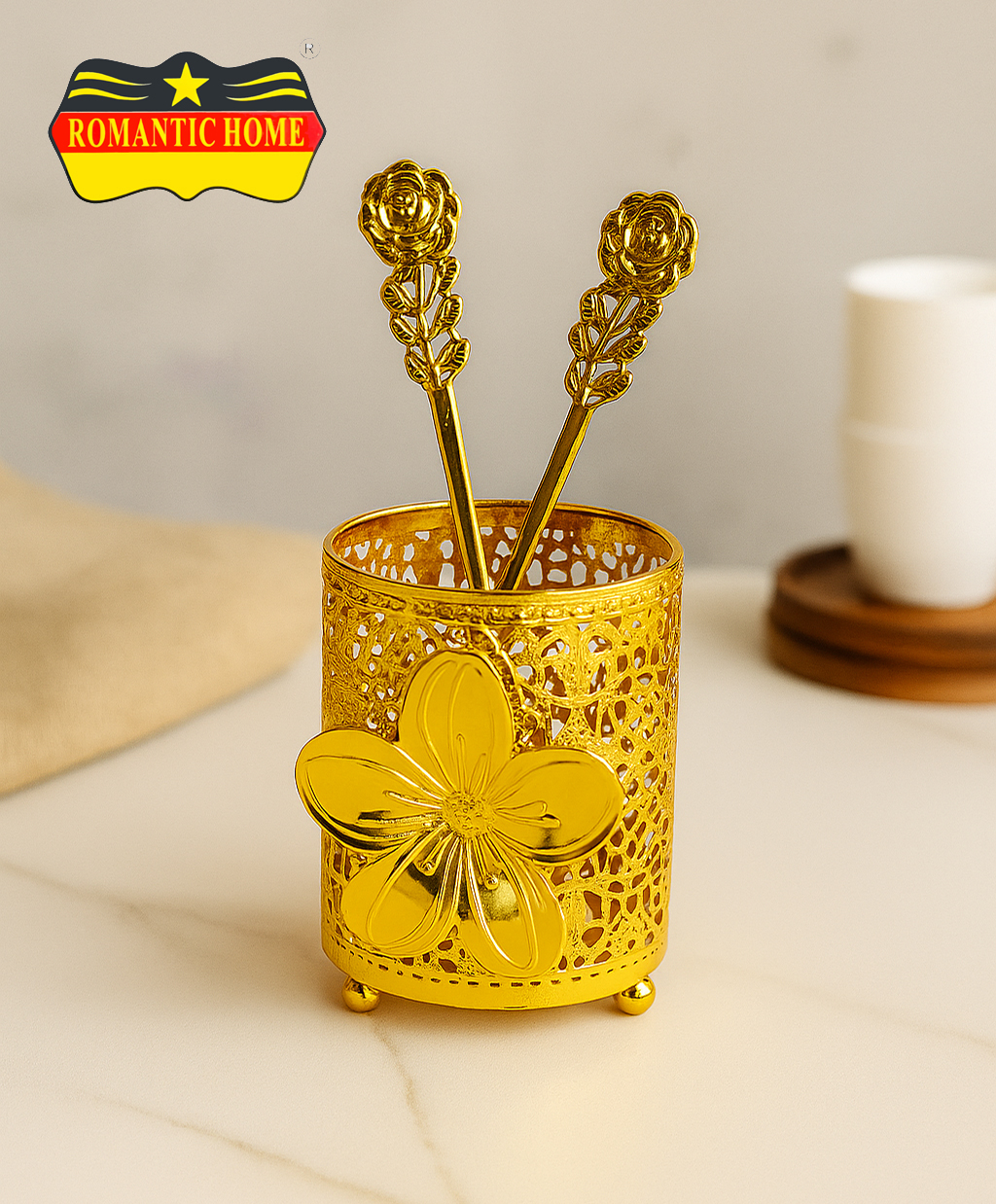 طراحی زیبا و چشمنواز: قاشقهای طلایی با نقش گل برجسته و ظرافت بالا