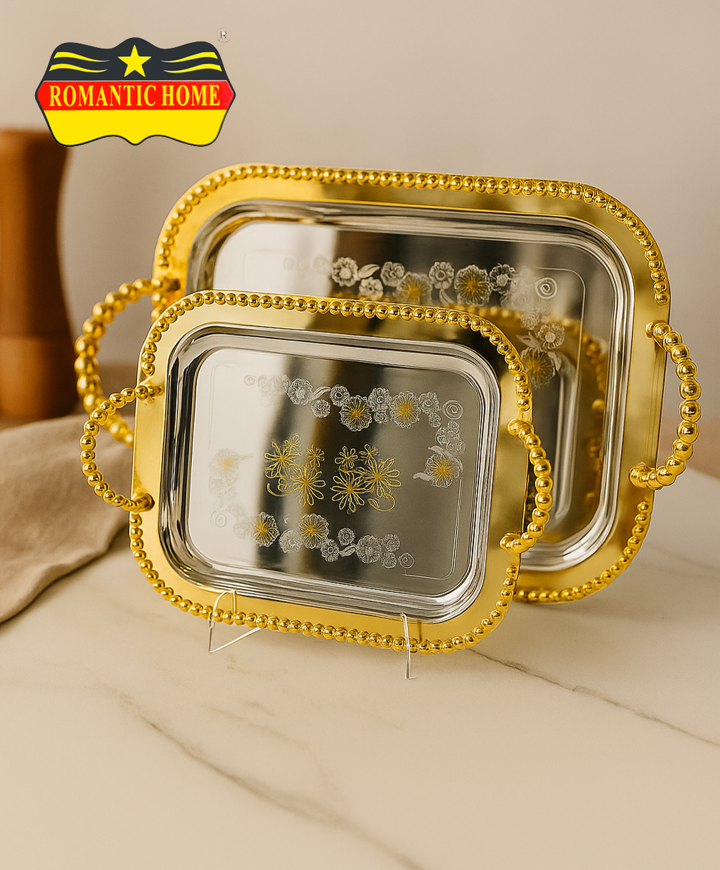 طراحی خاص و براق که جلوه‌ای مجلل و چشم‌نواز به سینی می‌دهد.