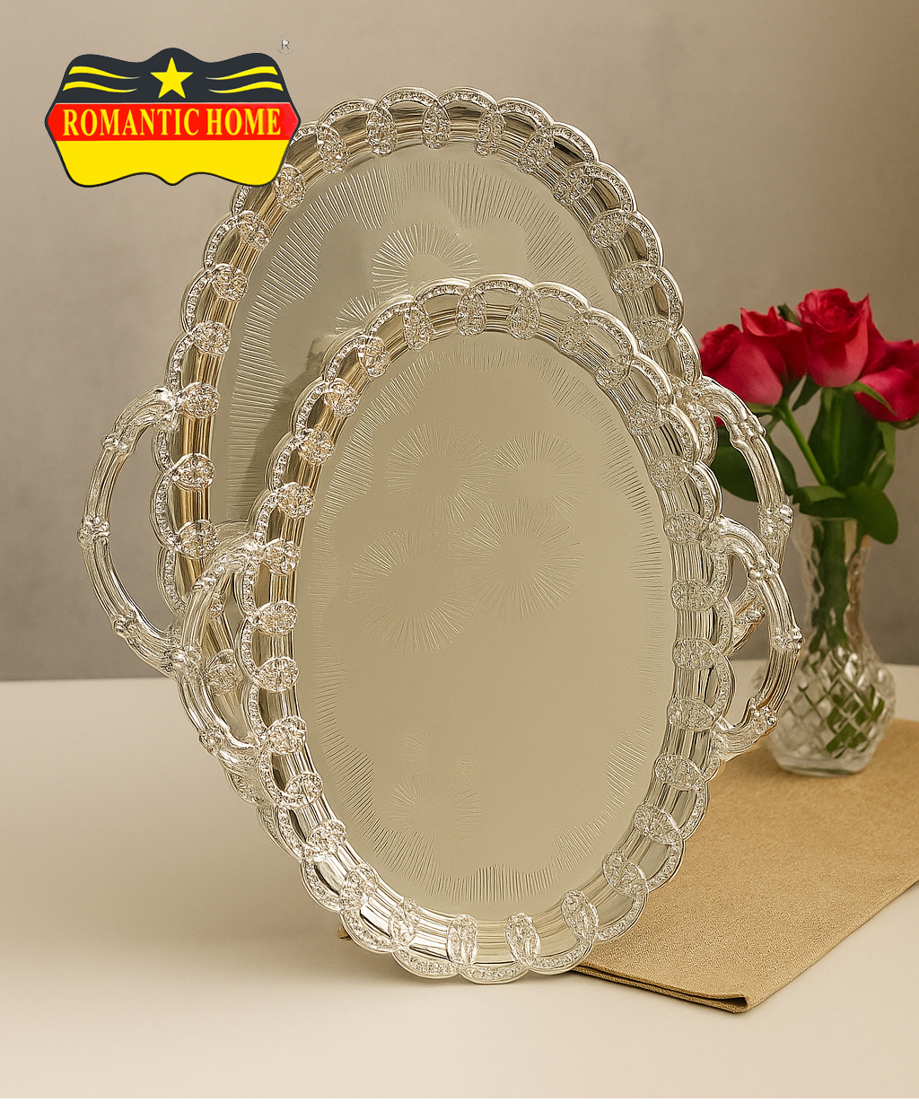 سینی بیضی طرح کلاسیک مدل JKM-36S یک انتخاب فوقالعاده برای پذیرایی شیک و حرفهای است. این محصول با طراحی ظریف، لبههای نقشدار و سطح براق آینهای، جلوهای لوکس به میز پذیرایی میبخشد.